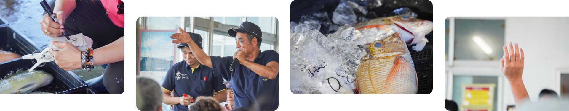 ほしい魚があったら、手を挙げて購入希望の金額を声に出して伝えましょう。同じ魚を希望する方がいる場合は、最高金額を出した人が購入できます。